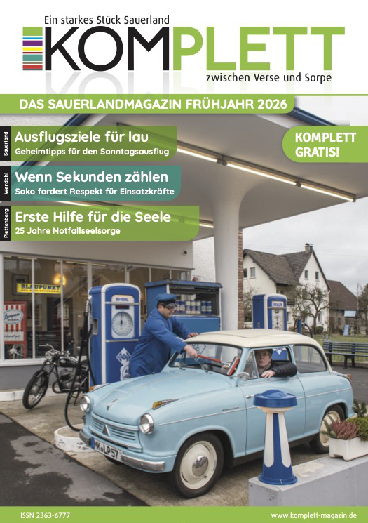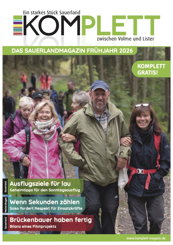 Die Frühjahrsausgaben von Komplett – Das Sauerlandmagazin erscheinen im April 2026. Im Mittelpunkt stehen erneut attraktive Ausflugsziele, engagierte Menschen sowie besondere Initiativen aus den Regionen zwischen Volme und Lister sowie zwischen Verse und Sorpe. Das Magazin bietet damit einen glaubwürdigen, nahbaren Einblick in das Leben vor Ort.
