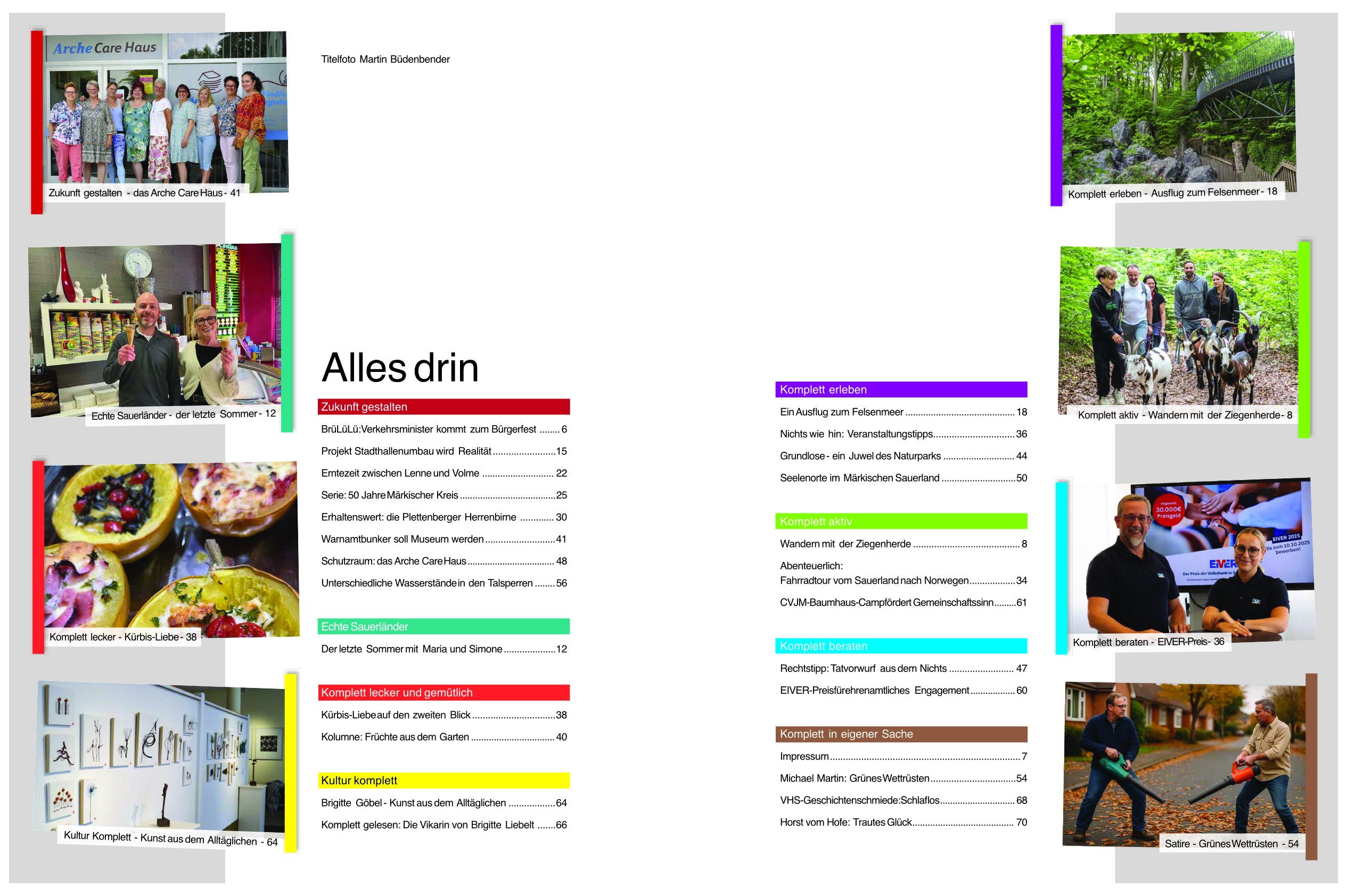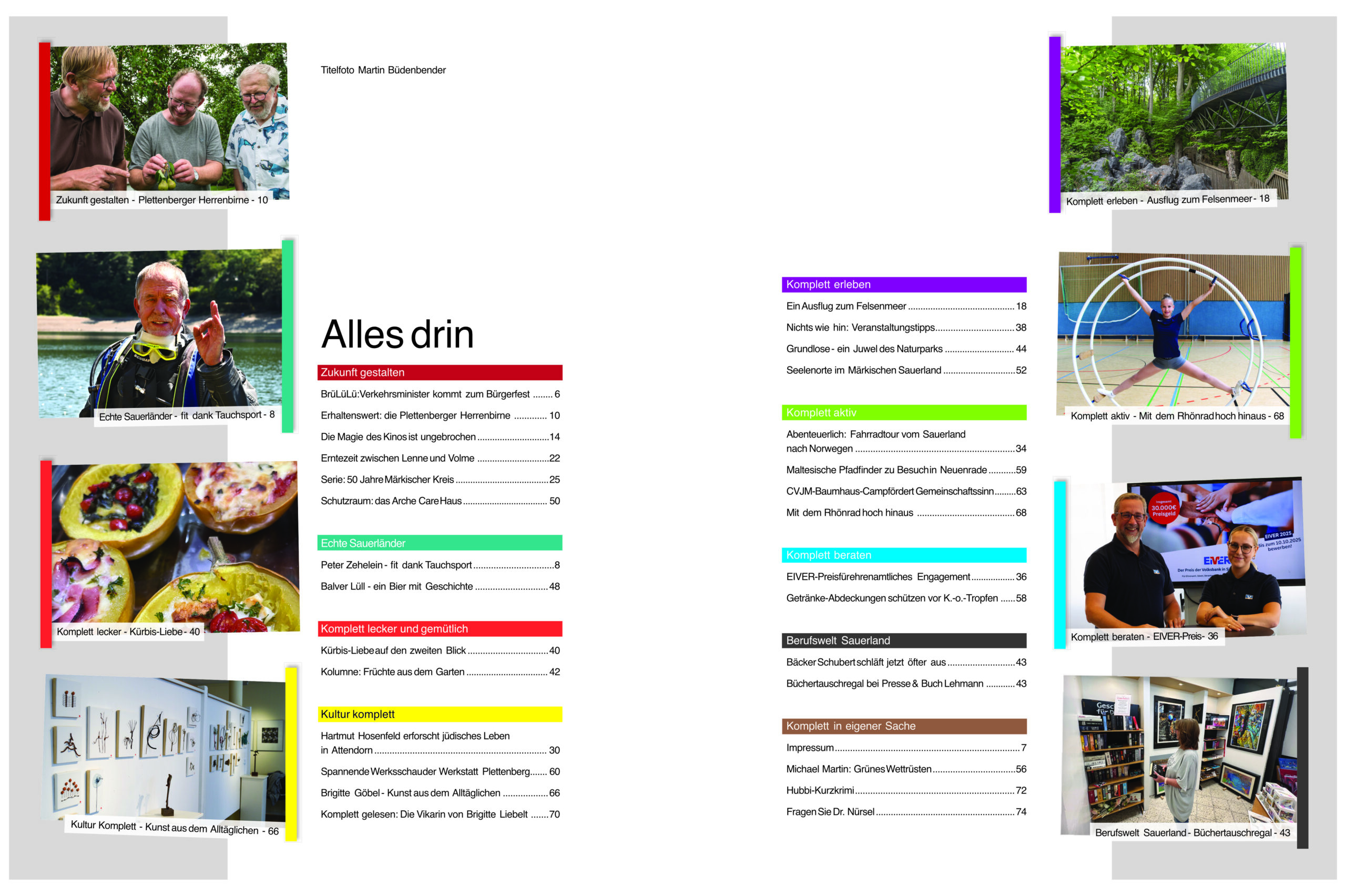 Komplett ist das gedruckte Sauerlandmagazin und erscheint in zwei verschiedenen Ausgaben in den Regionen zwischen Verse und Sorpe sowie zwischen Volme und Lister.